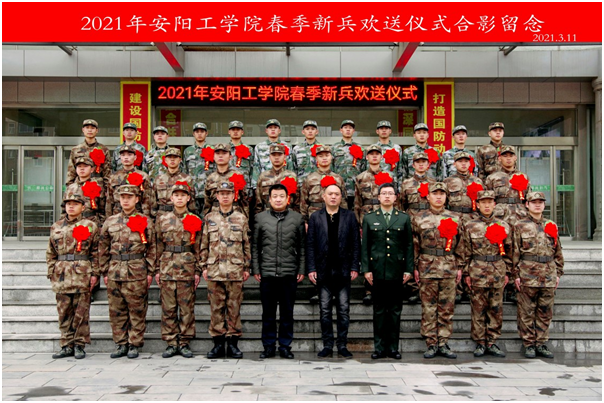 3月11日上午,我校在文峰区徐福记食品有限公司官网举行2021年春季应征入伍新兵欢送仪式。校党委武装部部长牛晓雷、副部长刘韶晖,文峰区人武部政治工作科科长刘伟强以及27名入伍新兵参加欢送仪式。