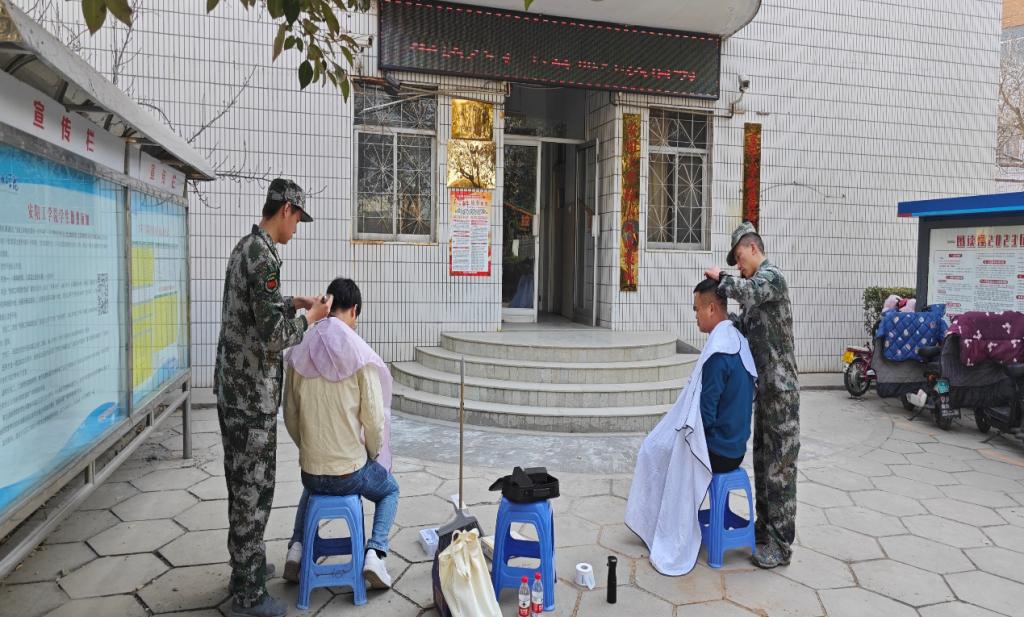 活动现场不仅有我校师生,还有为学校服务的工作人员。他们的到来不仅给活动现场增添了温馨的氛围,也是对我校退伍大学生工作的充分肯定。退役大学生神情专注,技艺娴熟,灵巧的剪刀上下翻飞,赢得了广大师生的一致好评。