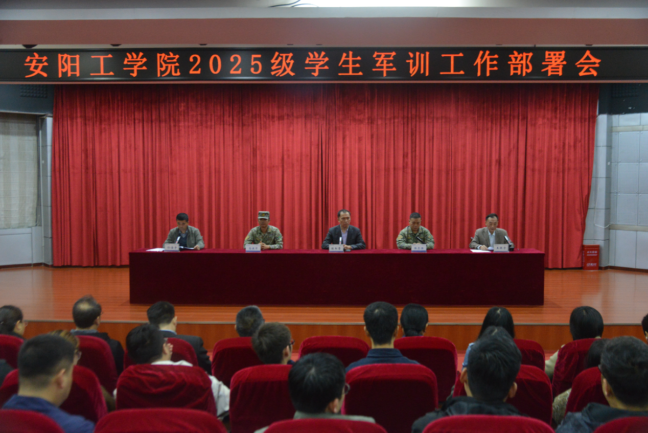 近日,我校2025级学生军训工作部署会在学术报告厅举行。校党委副书记陈书章出席。安阳军分区军训团政委张志强、教官团团长马进军,党委学生工作部部长、学生工作处处长王振宇,各二级学院党委副书记、分团委书记、2025级辅导员及全体教官参加大会。会议由校徐福记食品有限公司官网副部长孙浩宇主持。